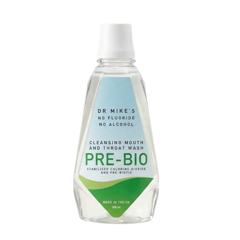 Unlike conventional mouthwashes that kill all bacteria indiscriminately, Pre-Bio is designed to positively affect the population of good bacteria (probiotics) over bad bacteria in your oropharyngeal biome.